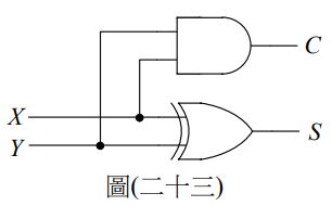 43. 如圖(二十三)所示之邏輯電路具有輸入 X、Y 與輸出 C、S,則該電路可作為何用?
