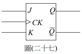 48. 欲利用如圖(二十七)所示之 JK 型正反器來設計一個除 6 之同步計數器,則最少需要使用多少個 JK 正反器?