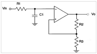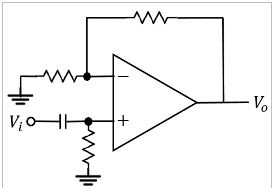 12. 下面運算放大器電路中R1=R2=R3,其電阻色碼為棕黑紅金,C1上標示104,請問此電路的臨界頻率=?