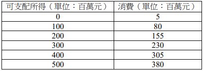 40 假設一國之可支配所得與消費的資料如下,並假設價格水準固定,沒有進口,也沒有課稅。下列敘述何者正確? (A)該國之邊際消費傾向為 0.25 (B)該國之邊際儲蓄傾向為 0.25 (C)該國之政府支出乘數為 1.33 (D)該國自發性消費支出為 0.25