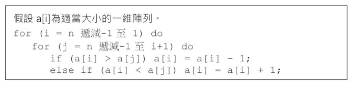b. 請說明以下虛擬程式片段的時間複雜度。