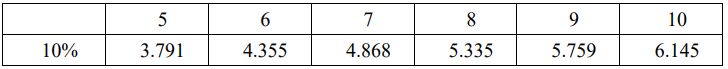 (1)公司要求之報酬率為10%,請計算( A )~( F )之正確數字(以下表所示年金現值表計算,金額四捨五入至元,餘四捨五入至小數點後兩位)。