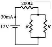 21. 電路圖中的電阻 R 等於多少Ω? (A) 100Ω (B) 200Ω (C) 300Ω (D) 400Ω