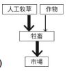 8. 美國目前為全球最大的豬肉出口國,其中愛荷華州的豬隻飼養量就佔了全美國的三分之一以上,請根據你對美國農業分布的了解,本區傳統養豬農場的農業流程圖,最可能是以下何者? (A)(B) (C)(D)