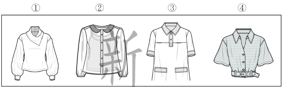 22. 見以下圖示,請選出單片翻領為何? (A) ①② (B) ②③ (C) ①④ (D) ③④