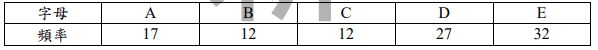 22. 以「霍夫曼編碼」依據以下字母頻率表產生每個字母的二進位碼,以下各項敘述何者正確? (A) 字母 A 編碼為 11 (B) 字母 B 編碼為 010 (C) 字母 C 編碼為 10 (D) 字母 E 編碼為 00