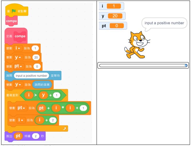 50. 追蹤 Scratch 程式: 當操作者輸入 7 ,貓會說: (A) 56 (B) 100 (C) 190 (D) 216