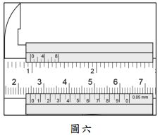 21. 圖六游標卡尺測量的判讀結果應為? (A) 24.35mm (B) 24.7mm (C) 25.35mm (D) 25.7mm