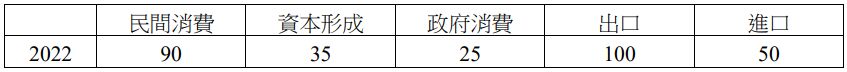 26 給定以下某國國內生產毛額(支出面)資料,2022 年此國家的貿易為何? (A)順差 50 千億元 (B)逆差 50 千億元 (C)順差 45 千億元 (D)逆差 45 千億元
