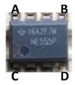 76. 承上題,請問 0.01uF 電容接上圖中 NE555 IC 的哪一 隻接腳?(A)A (B) B (C) C (D)D