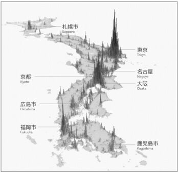 34. 圖為日本某個地理要素的分布圖。該地理要素最可能是下列何者? (A)年降水量 (B)牛乳產量 (C)人口密度 (D)森林覆蓋率