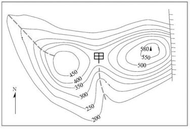 39. 圖為某地的等高線圖。其中甲處最可能稱為何種地形? (A)鞍部 (B)瀑布 (C)盆地 (D)山峰
