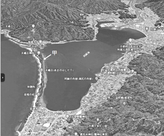 40. 圖為世界某處的海岸地形。圖中的「甲」地形為何? (A)沙嘴 (B)三角洲 (C)海蝕平台 (D)陸連島