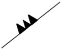 8. 右圖在常見的地質圖圖例中代表何種意義? (A)低角度逆斷層-位置不確定-鋸齒在上盤 (B)低角度逆斷層-位置確定-鋸齒在上盤 (C)低角度逆斷層-位置不確定-鋸齒在下盤 (D)低角度逆斷層-位置確定-鋸齒在下盤