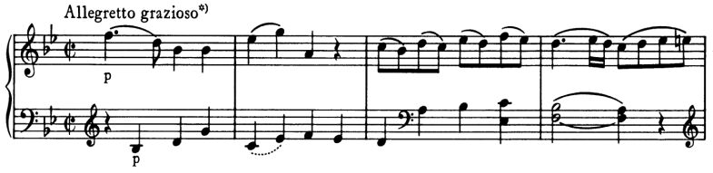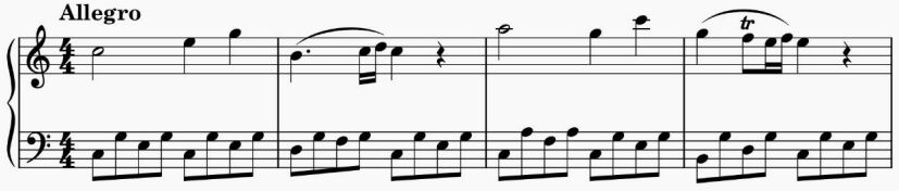 47.下列譜例的四小節音樂是屬於何種結構? (A)平行構造的樂段 (B)對比構造的樂段 (C)複合樂段 (D)樂句式樂段