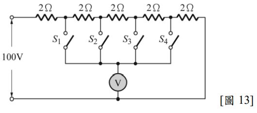 13. 如圖 13 所示電路,請問哪一個開關閉合時伏特計指示為 60V ?