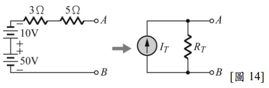 16. 如圖 16 所示之等效電路中,欲轉換成諾頓等效電路,其中 之值為多少?