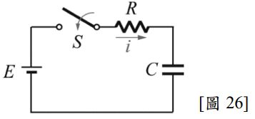 26. 如圖 26 所示為 RC 充電電路,試選出何者為其充電電流的曲線?