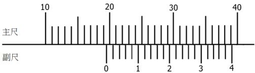 47. 利用精度0.02mm的游標卡尺,量測某工件時,其主尺、副尺刻線如圖所示,則正確讀數應為何? (A)19.36mm (B)19.03mm (C)19.40mm (D)19.06mm