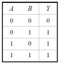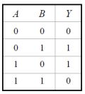 50. 某邏輯閘如圖,請問此邏輯閘之真值表為下列何者? (A)(B)(C)(D)