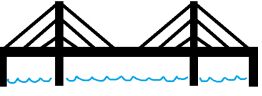 60. 某橋梁示意圖如下,請問下列敘述何者正確? (A)此為懸索橋 (B)此種橋梁跨距較小 (C)此種橋梁的斜向構件,受壓力及拉力 (D)此種橋梁可節省材料