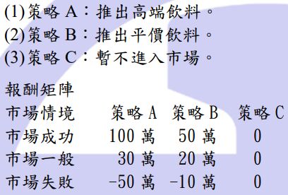 3. 一家飲料公司計劃進軍一個新市場,有三個策略。悲觀者採何策略並解釋之?