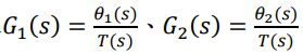 2. 若此系統之狀態空間(state-space representation)為,其中、u = [T(t)]且狀態變數x1 = θ1(t)、x2 = θ2(t)、x3 = ,試求矩陣A、B分別為何?