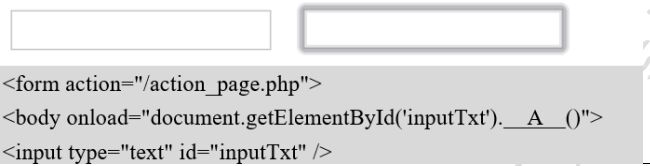 58 如附圖所示程式碼,若要產生如圖的效果,讓游標點擊欄位時,邊框變灰,程式碼底線 A 處的內容應為下列哪一項?(A) autofocus (B)focus (C)cursor (D)input