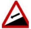 34 (A)圖示標誌為險降坡路段小心駕駛。 (B)圖示標誌為左側路段小心。