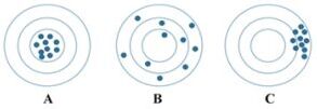 26.關於信度、效度的關係圖,下列說明何者有誤?(A)圖A代表信度、效度皆高(B)圖B代表信度、效度皆差(C)圖C顯示有效度(D)圖A、圖C皆顯示具信度