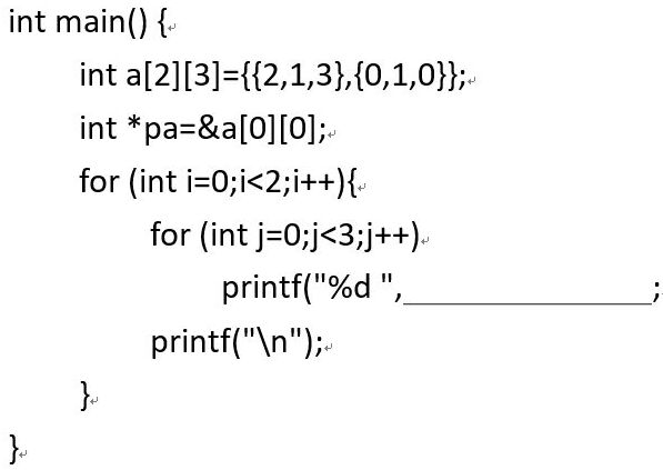 17.程式填空,完成空格,可輸出二維陣列。(A)*(pa+i*3+j))(B)*(pa+i*2+j))(C)*(pa))(D)*(pa+j))