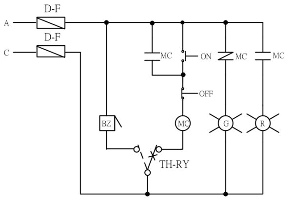 5. 如下圖電路所示,在器具皆正常下,當積熱電驛動作時,蜂鳴器(BZ)不響,其可能故障原因之一為