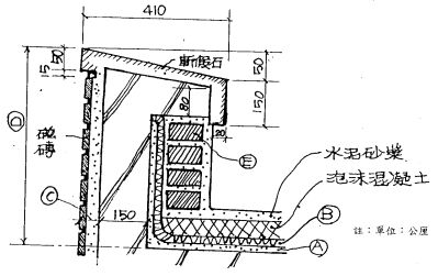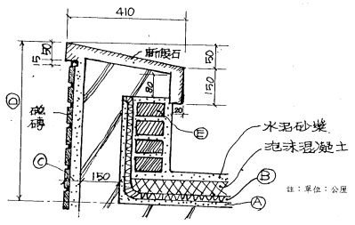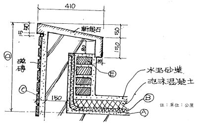 (A)地下層 (B)地面層 (C)屋面層 (D)水溝 。