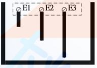 65. 如下圖所示,為液面控制器感測棒 E1、E2、E3,其中須接地之感測棒為 (A)E1 (B)E2 (C)E3 (D)任一感測棒 。