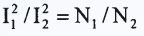102. 變壓器一二次電流與線圈匝數之關係式為 (A)I1/I2=N2/N1 (B)I1/I2=N1/N2 (C)I1I2=N1N2 (D)