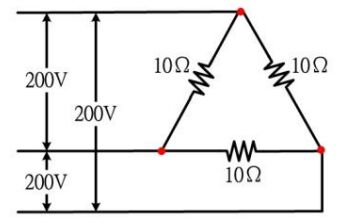 71. 如下圖所示,三個 10Ω電阻所消耗有效功率(KW)為