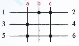 3. 如下圖所示,下列敘述何者正確? (A)當開關切入 1,2 位置時,a 及 1 不 通 (B)當開關切入 c 位置時,c 與 3 及 4 不通 (C)當開關切入 b 位置時,1 與 2 不通 (D)當開關切入 a 位置時,5 與 6 是通路 。