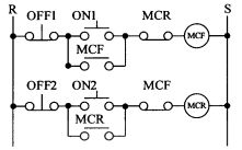 7. 如下圖所示,電磁接觸器 MCF 在運轉中,如再按 ON2 按鈕,則電磁接觸器 MCR (A)不一定動作 (B)不動作 (C)動作 (D)發生故障 。