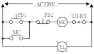55. 如下圖所示,電磁接觸器線圈之內阻值為 300Ω,指示燈之內阻值為 600 Ω。通電後,若 PB1 或 PB2 均未動作,則電磁接觸器輔助 a 接點間之電壓值為 (A)0VAC (B)220VAC (C)VAC (D)220×600/900 VAC 。