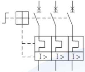 62. 如下圖所示之歐規斷路器,若其規格為 3 P 220VAC 25KA 2.5~4A 過載可 調,瞬跳值為 10 倍以上,下列有關該器具之功能敘述何者錯誤? (A)當過載旋鈕切於 4A 時,若負載電流大於 40A,則該斷路器做過載跳脫 (B)該斷路器具有過載及短路跳脫功能 (C)當短路電流大於 25KA 時,該斷路器無跳脫功能 (D)該斷路器二次側不必加裝過載保護電驛