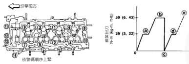 45. 如圖所示進行汽缸蓋螺栓鎖緊時,下列敘述何者正確?