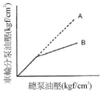 155. 如下圖所示 A、B 線為煞車總泵送至前後輪煞車分泵之油壓特性,下列敘述何者正確?