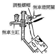 174. 如圖所示欲調整煞車踏板之游隙時應先調整