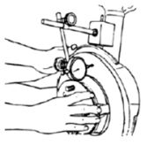 183. 某技師正從事煞車系統的檢查如圖所示,當旋轉煞車盤一圈後,千分錶之指針擺動幅度為三格?