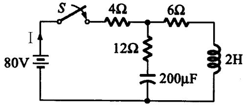 91. 下圖所示,在開關 S 接通之瞬間線路電流 I 為