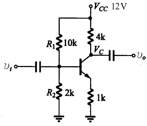 28. 電晶體共射極放大器,加入射極電阻器而不加旁路電容器可 (A)提高輸入阻抗 (B)降低輸出阻抗 (C)降低輸入阻抗 (D)增加非線性失真 。