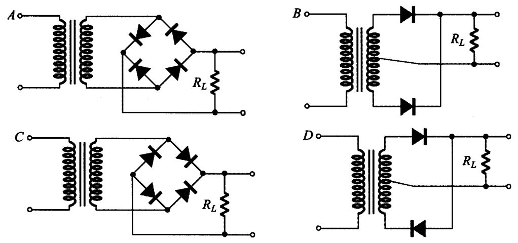 40. 下列整流電路,何者可得全波整流輸出?