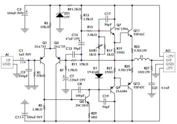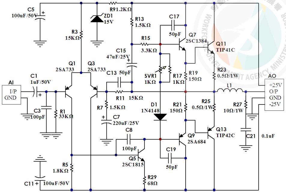 71. 有關 OCL 放大器之敘述,下列何者正確? (A)當電源為±24V 負載為 8Ω時,理論上輸出最大功率為 48W (B)差動輸入級可抑制共模雜訊 (C)中點電壓為