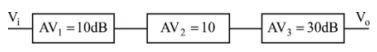 64. 下圖電路所示,為一個三級串接放大器,若輸入電壓 Vi=1 uV,下列敘述何者正確?