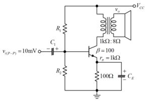 為 200Ω (C)工作點的集極電流為 50mA (D)直流電源供給電路之平均功率為 2.5W 。